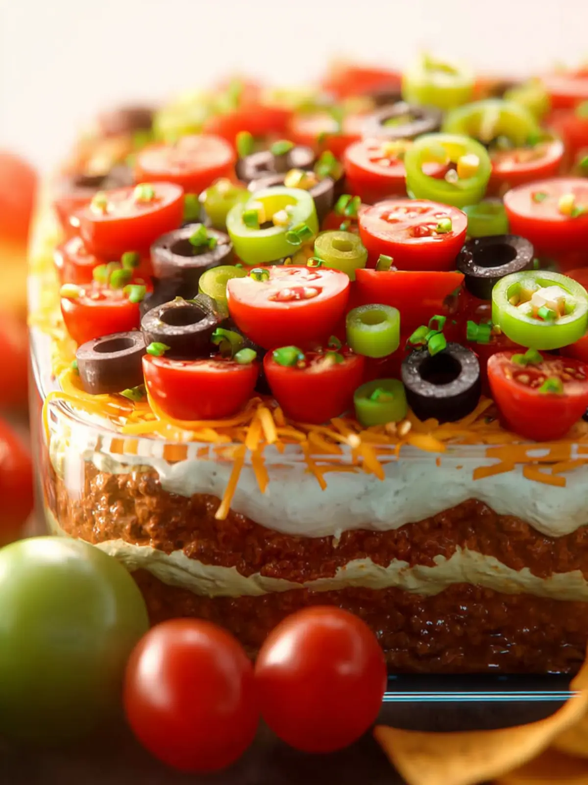 Consider serving your dip in a clear glass dish. This not only showcases the beautiful layers but also invites people to dig in. Provide various dipping options like tortilla chips, veggie sticks, or even pita bread for a fun twist.