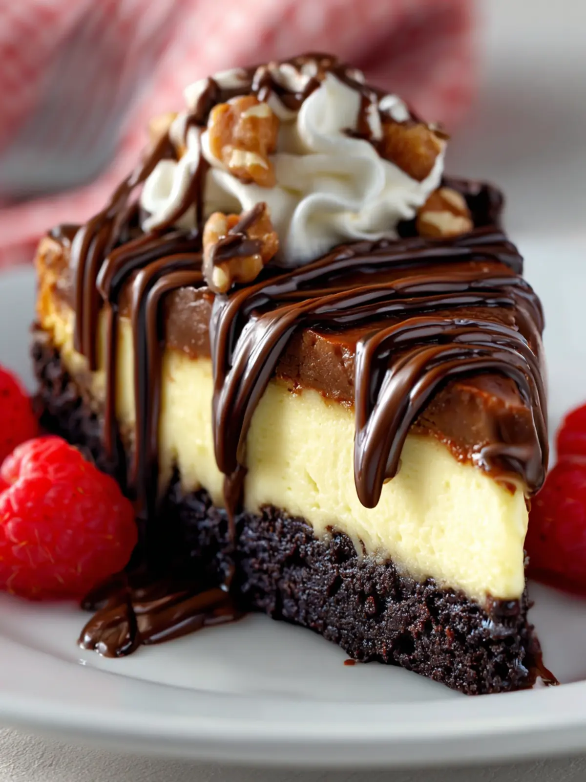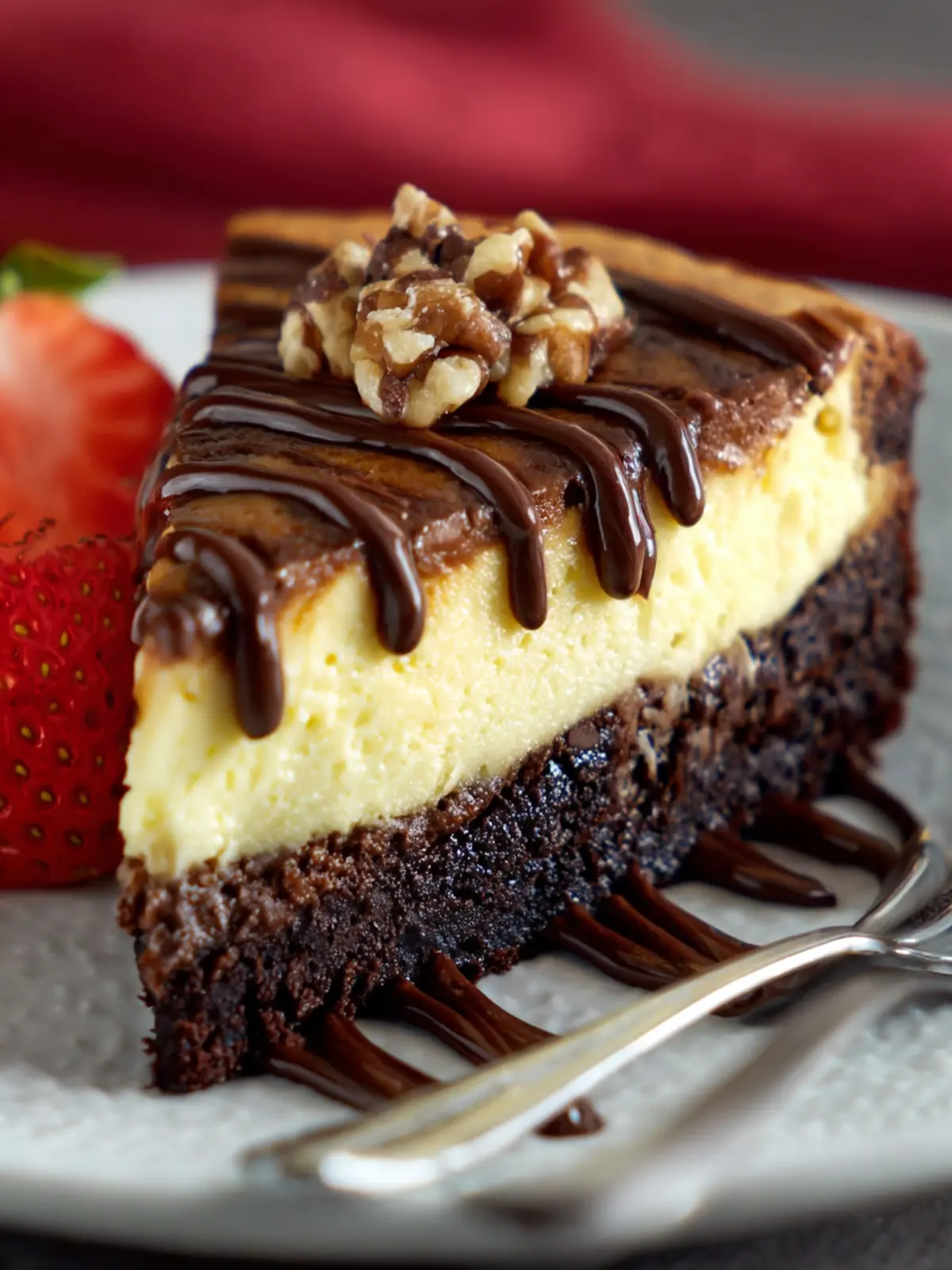 • Fruit-Infused Brownie Cheesecake: Layer in slices of fresh strawberries or dollops of raspberry sauce on top of the cheesecake layer. The bright fruit contrasts beautifully with the rich chocolate.