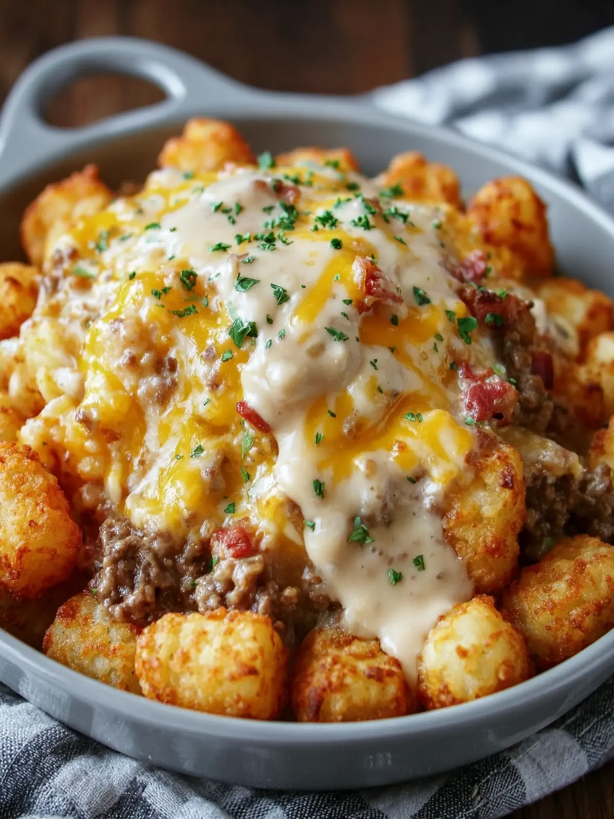 - Layers of Flavor: Each bite offers a melty explosion of cheese combined with the hearty goodness of ground beef and the delightful crunch of tater tots.