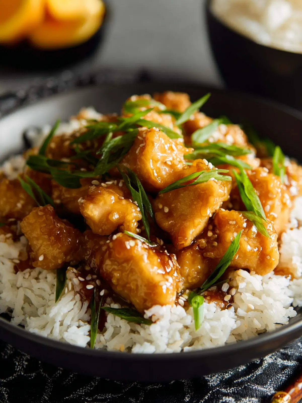 A delicious orange chicken recipe with a crispy coating and a sweet and tangy sauce.