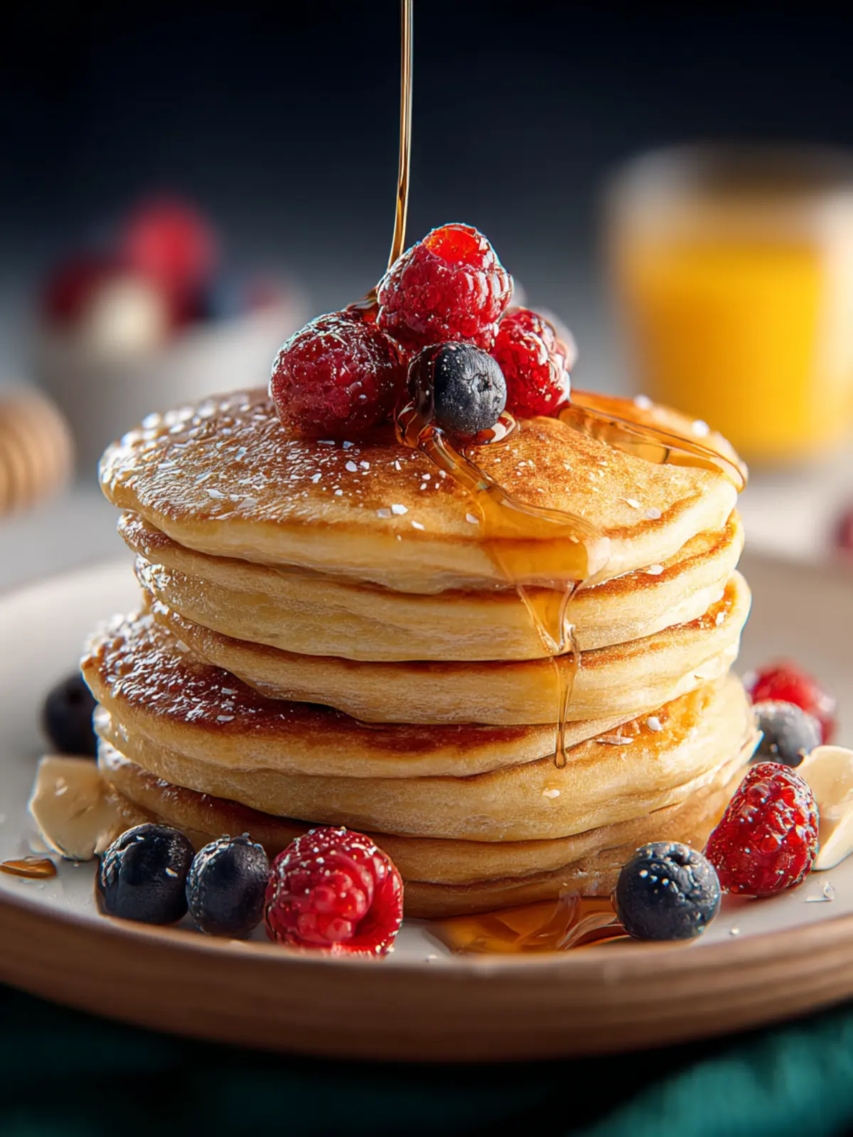 Maple Syrup or Honey: A light drizzle of pure maple syrup or honey adds just the right amount of sweetness to complement the protein-rich pancakes.