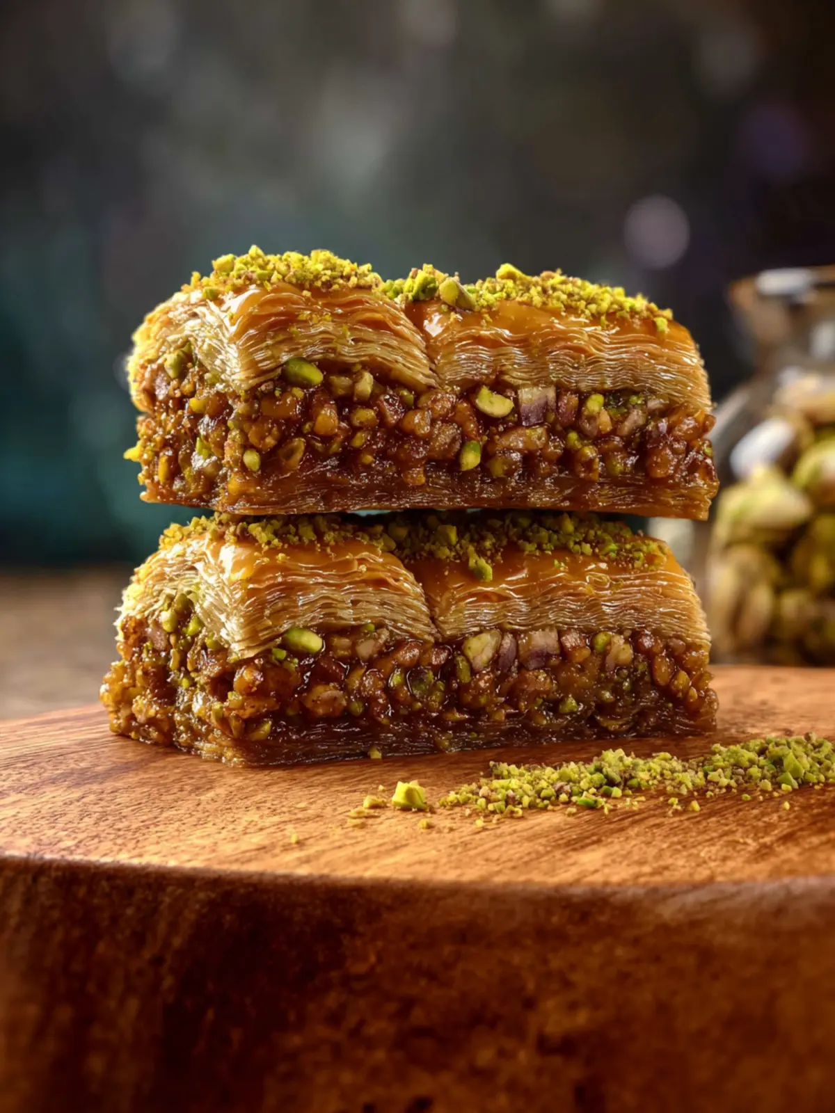 Honey and Sugar: The sweet syrup that bathes the baklava is made from honey and sugar. Honey adds depth and floral notes, while sugar helps balance the sweetness.