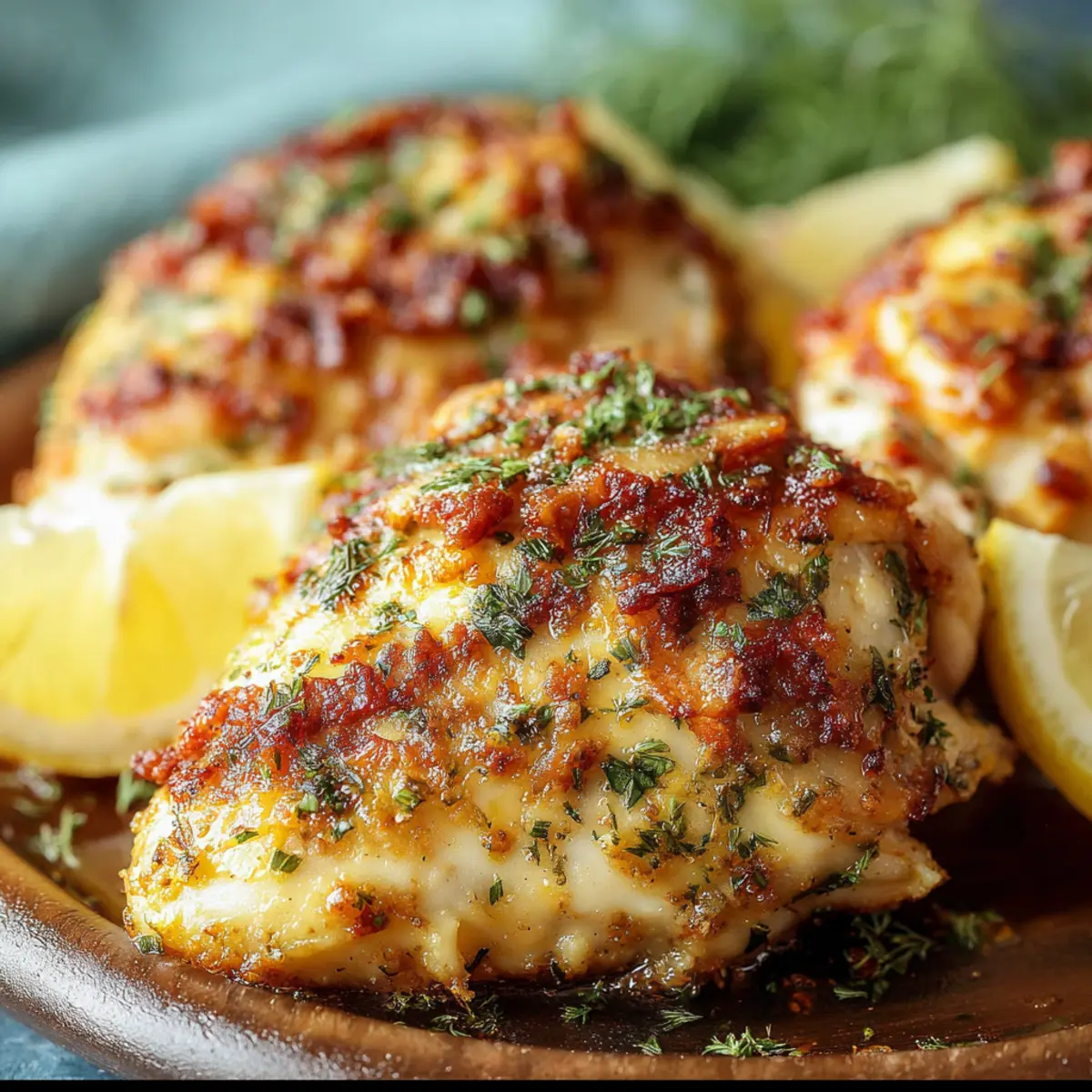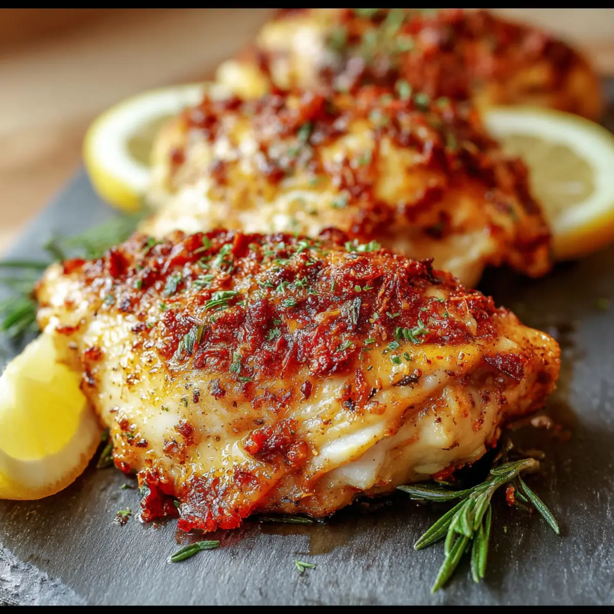 - Garnish and Serve: Remove from the oven and let the chicken rest for a few minutes. Garnish with chopped fresh parsley and serve with lemon wedges if desired.