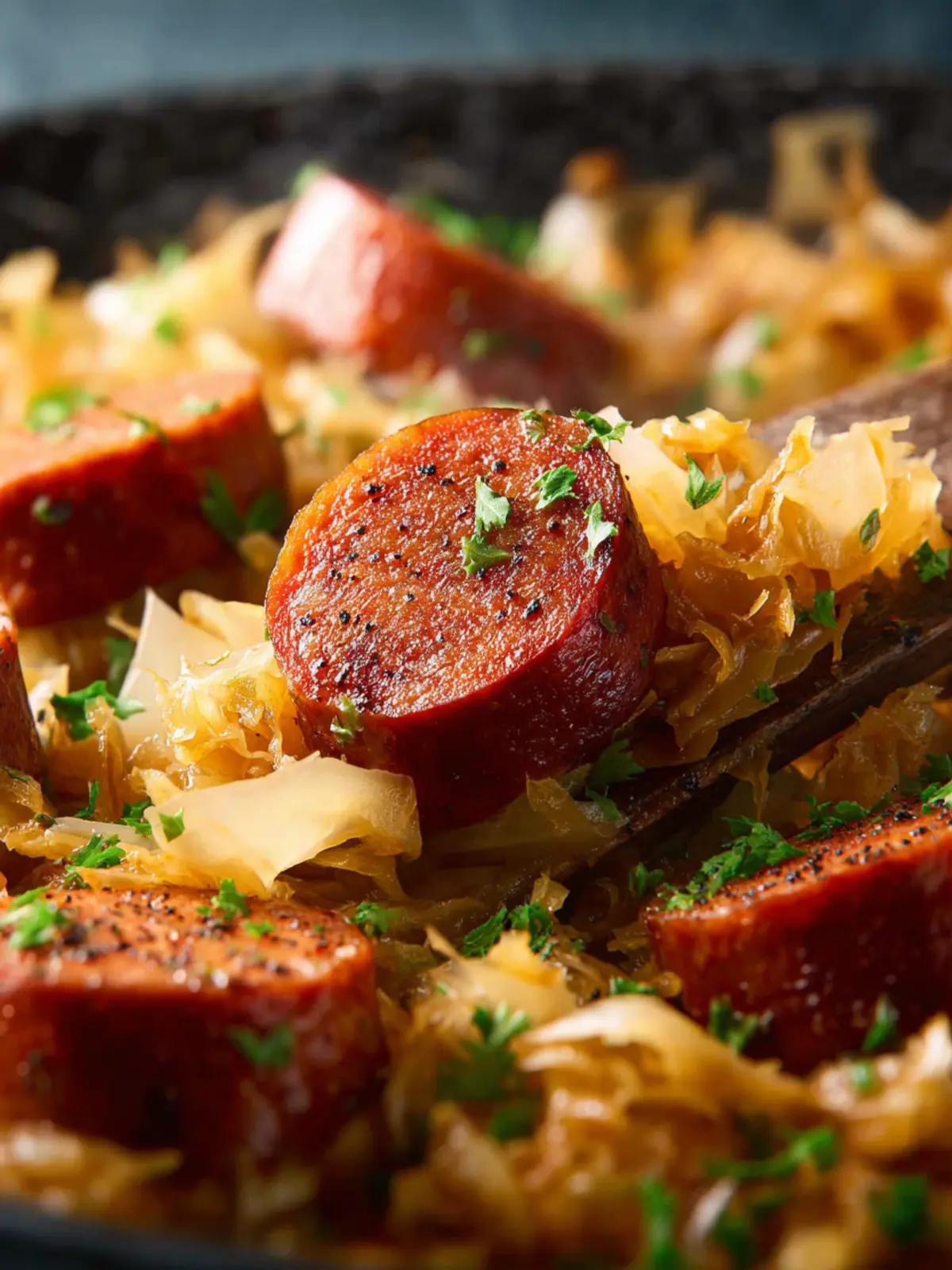 Nutrition Boost: Packed with protein from the sausage and probiotics from the fermented cabbage, this dish not only satisfies hunger but also supports gut health. Adding some potatoes or carrots can further increase its nutritional value.