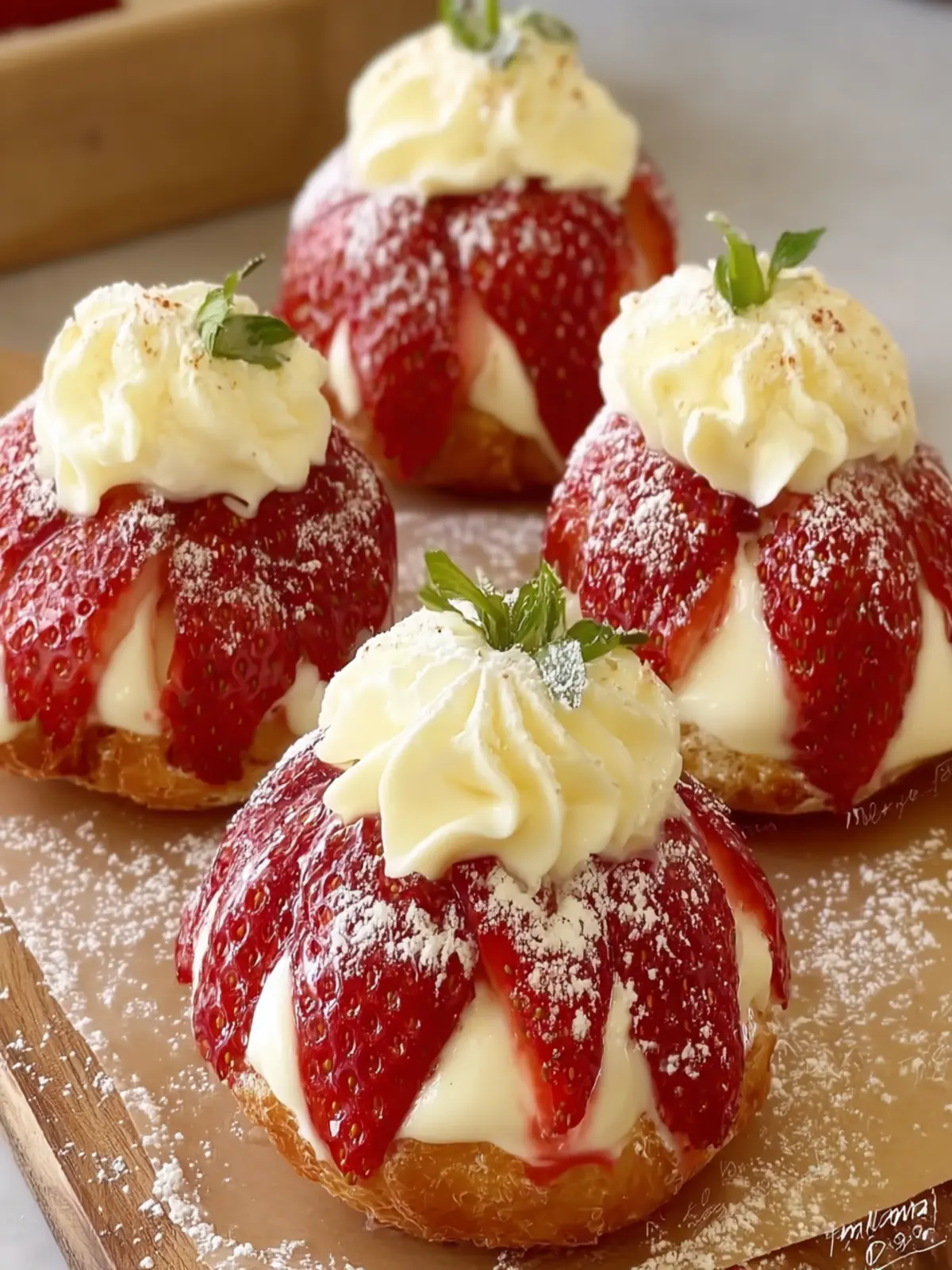 - Garnish with Fresh Strawberries: Scatter halved or whole strawberries on top of your delights for a pop of color. Not only does it add visual appeal, but it also emphasizes the berry flavor.