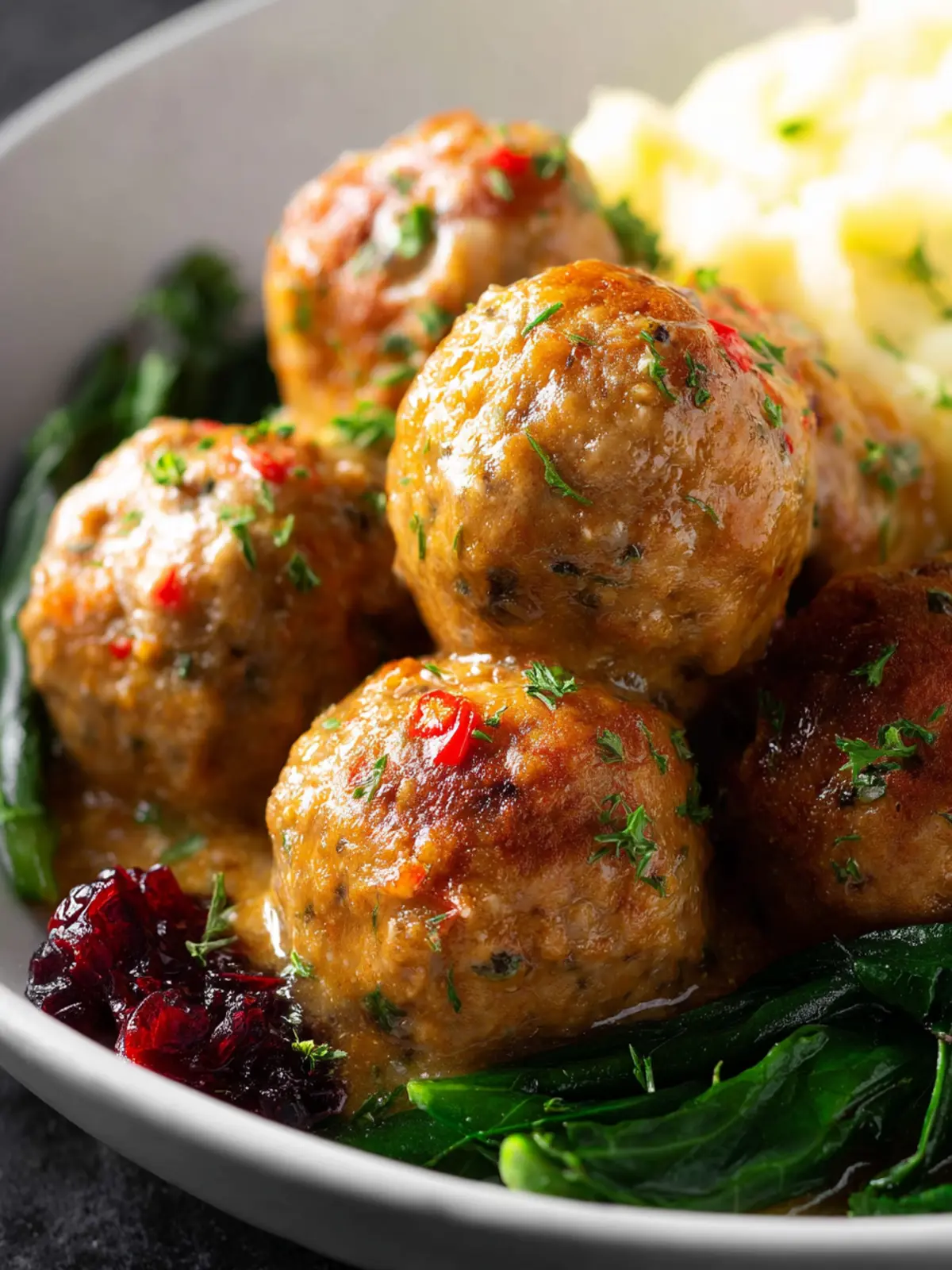 Delicious turkey meatballs made with a flavorful stuffing blend.
