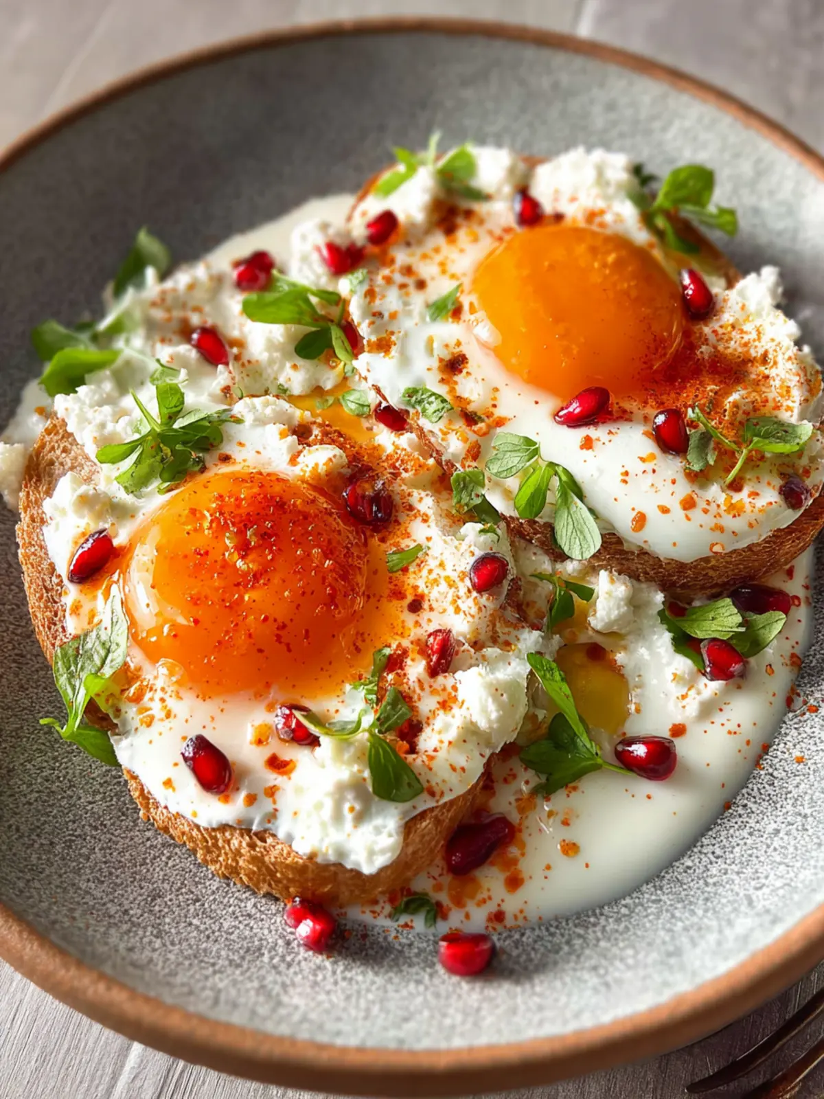 • Flavor Profile: The dish is a symphony of layers—tangy yogurt, perfectly poached eggs, and aromatic herbs, each component elevating the other.