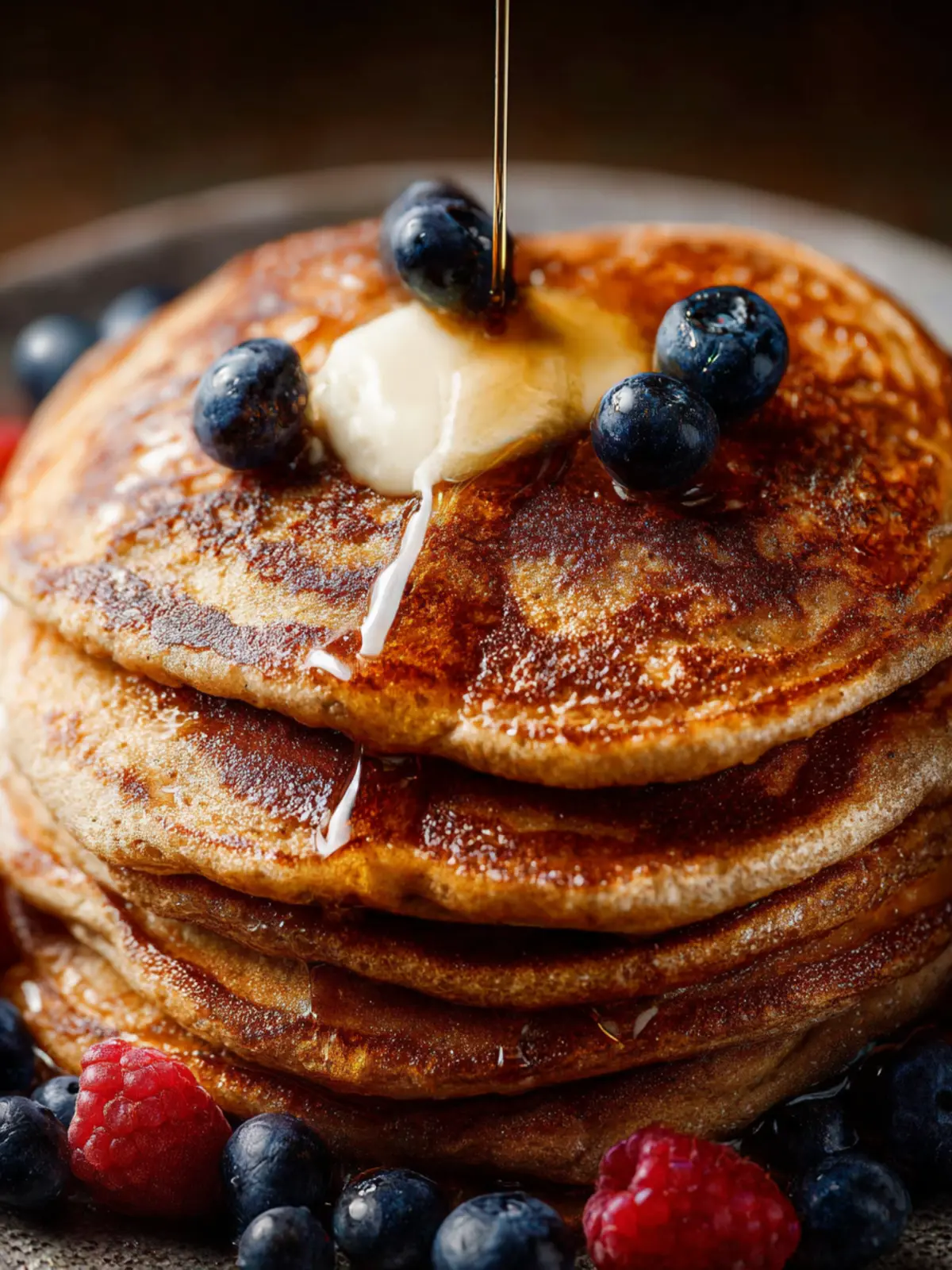 Maple Syrup: Infusing natural sweetness and depth into the mix, pure maple syrup is the ideal companion for your pancakes. Trust me, that authentic flavor is worth it!