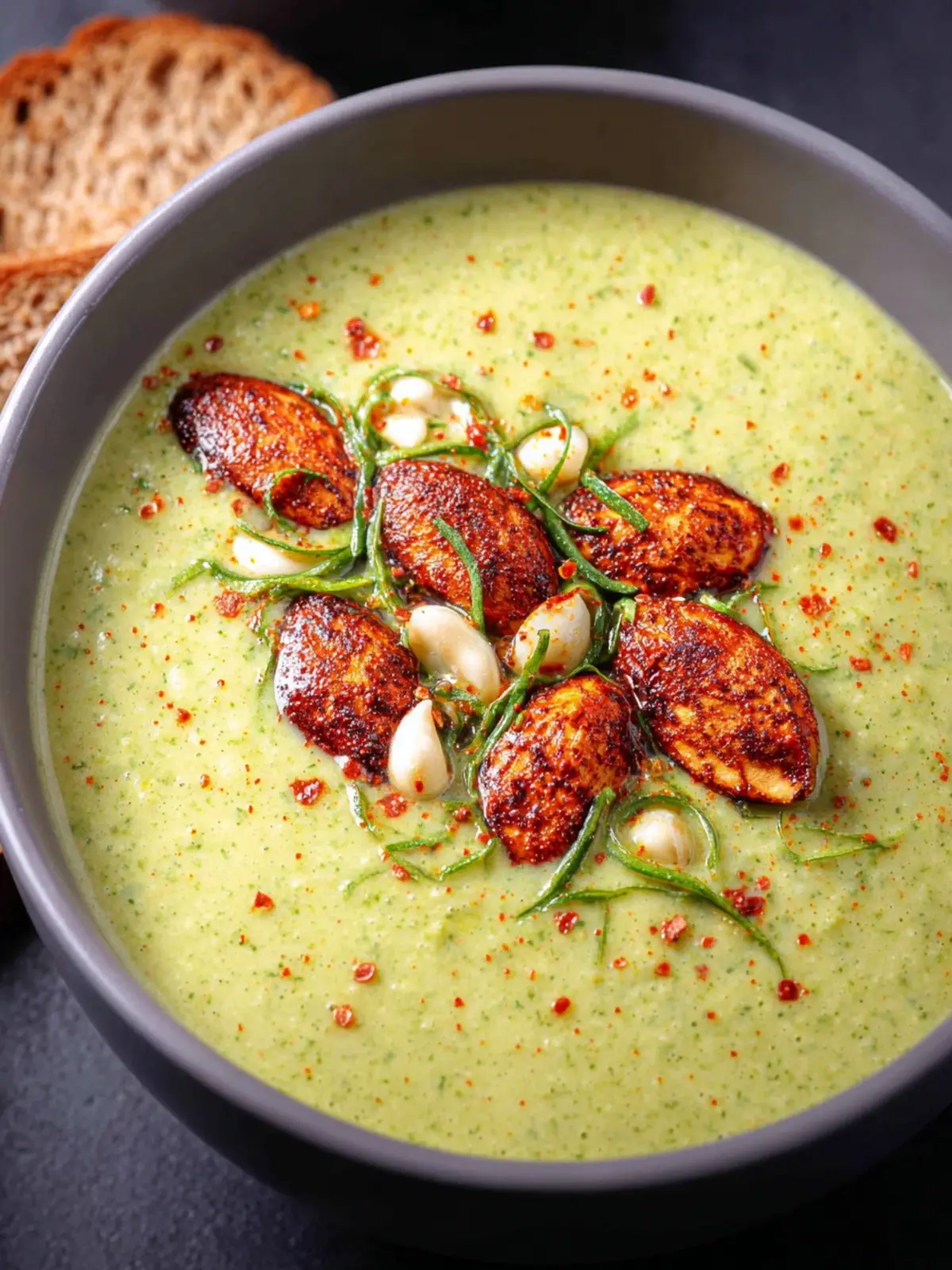 Consider a side of crusty bread or homemade croutons. The contrast of the velvety zucchini soup and the crunchy texture of toasted bread is simply divine. You can also top the soup with crispy bacon bits or roasted chickpeas for an added crunch.